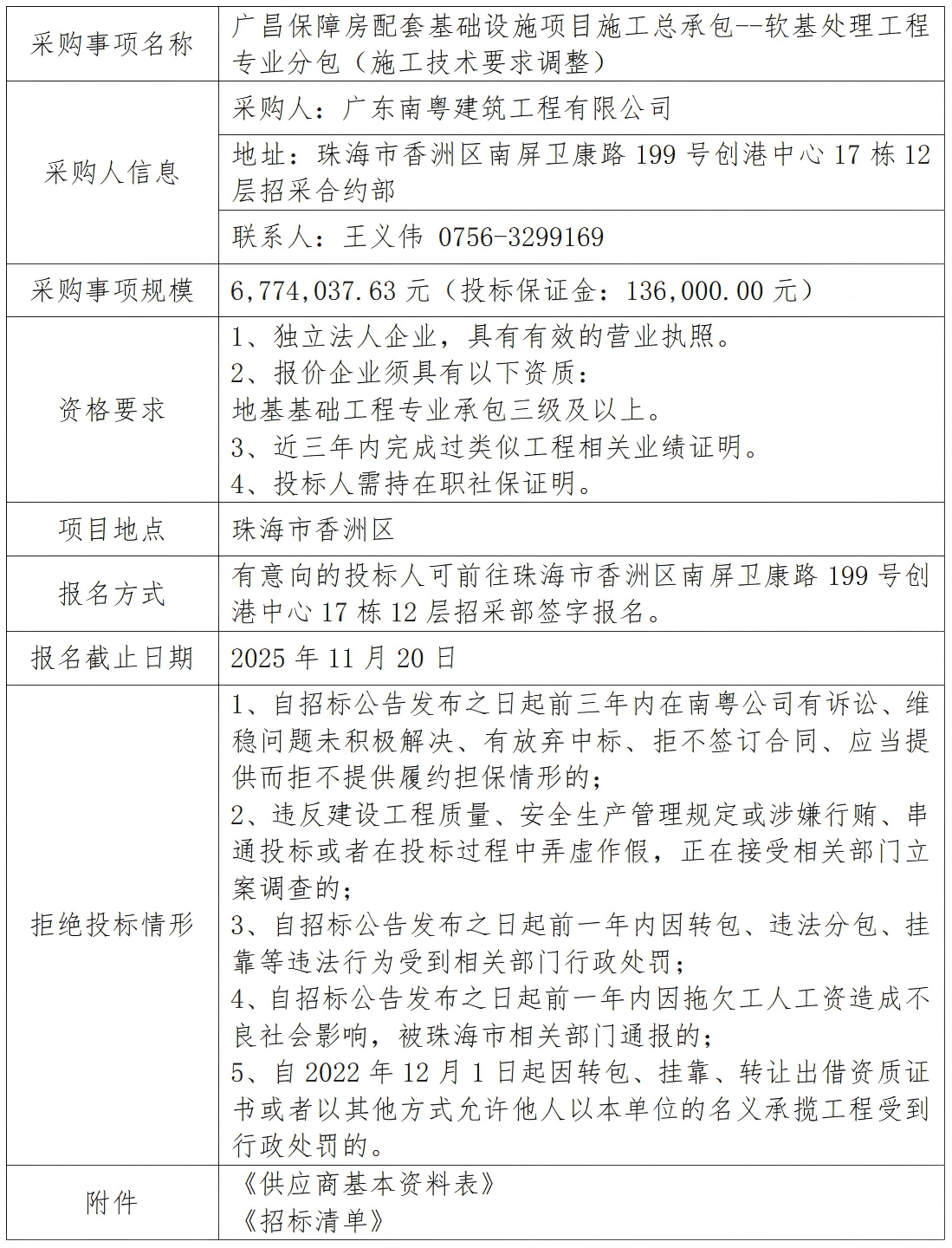 廣昌保障房配套基礎(chǔ)設(shè)施項目施工總承包--軟基處理工程專業(yè)分包(施工技術(shù)要求調(diào)整) 專欄:工程招標 發(fā)布日期: 2025-11-18 作者:招采管理中心 附件:供應(yīng)商基本資料表 附件:廣昌保障房配套基礎(chǔ)設(shè)施項目施工總承包--軟基處理工程專業(yè)分包招標清單 返回列表 上一篇:廣昌保障房配套基礎(chǔ)設(shè)施項目施工總承包-鋼板樁支護工程專業(yè)分包 下一篇:洪灣舊村更新項目周邊環(huán)山路等市政道路工程-波形護欄材料采購