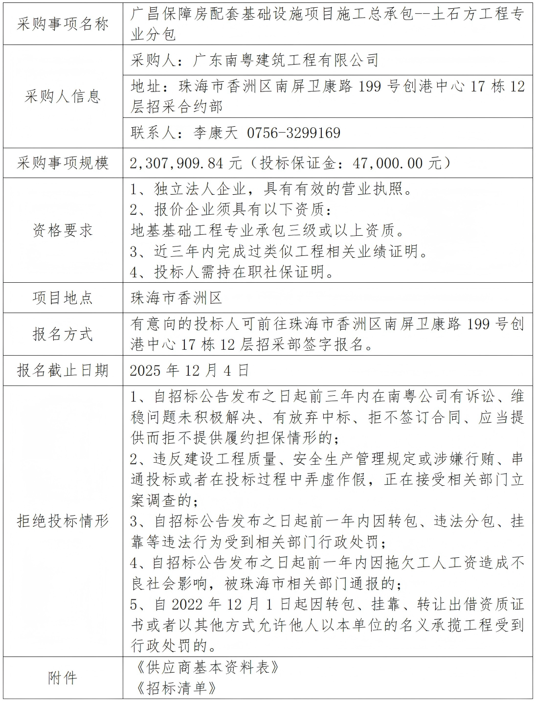 廣昌保障房配套基礎(chǔ)設(shè)施項目施工總承包--土石方工程專業(yè)分包 專欄:工程招標 發(fā)布日期: 2025-12-01 作者:招采管理中心 附件:供應(yīng)商基本資料表 附件:廣昌保障房配套基礎(chǔ)設(shè)施項目施工總承包--土石方工程專業(yè)分包- 空白清單 返回列表 上一篇:廣昌保障房配套基礎(chǔ)設(shè)施項目施工總承包-食堂服務(wù) 下一篇:廣昌保障房配套基礎(chǔ)設(shè)施項目施工總承包-地材材料采購招標