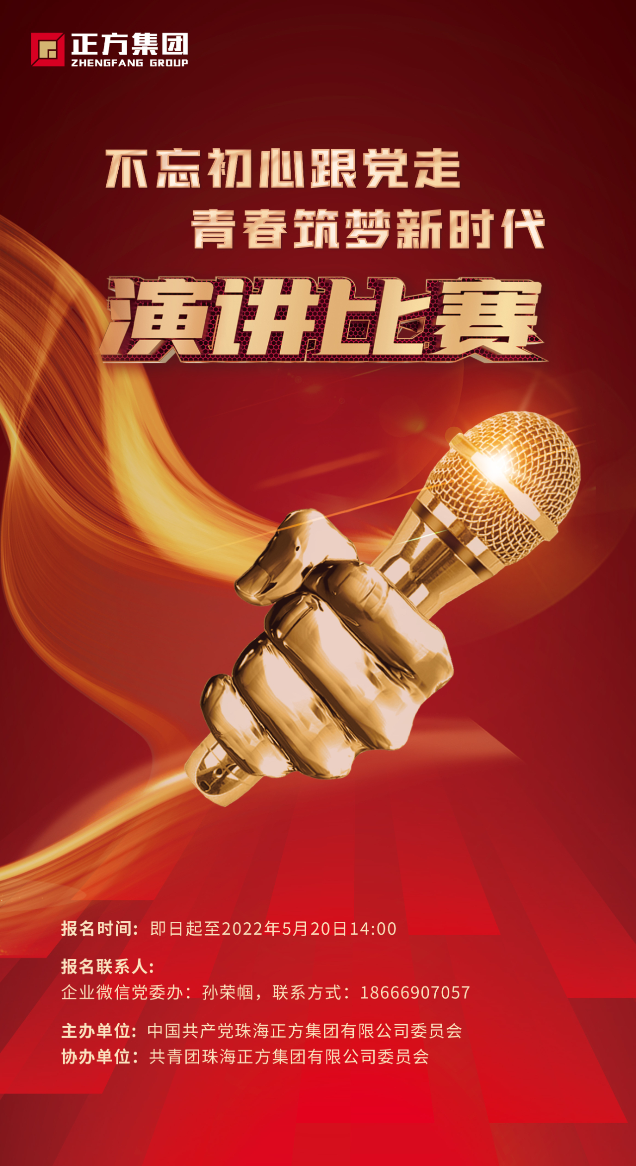 “青年興則國家興,青年強(qiáng)則國家強(qiáng)。”為激勵正方集團(tuán)青年在實(shí)現(xiàn)中華民族偉大復(fù)興的時(shí)代洪流中踔厲奮發(fā)、勇毅前進(jìn),正方集團(tuán)黨委將于2022年6月2日開展“不忘初心跟黨走,青春筑夢新時(shí)代”為主題的演講比賽。