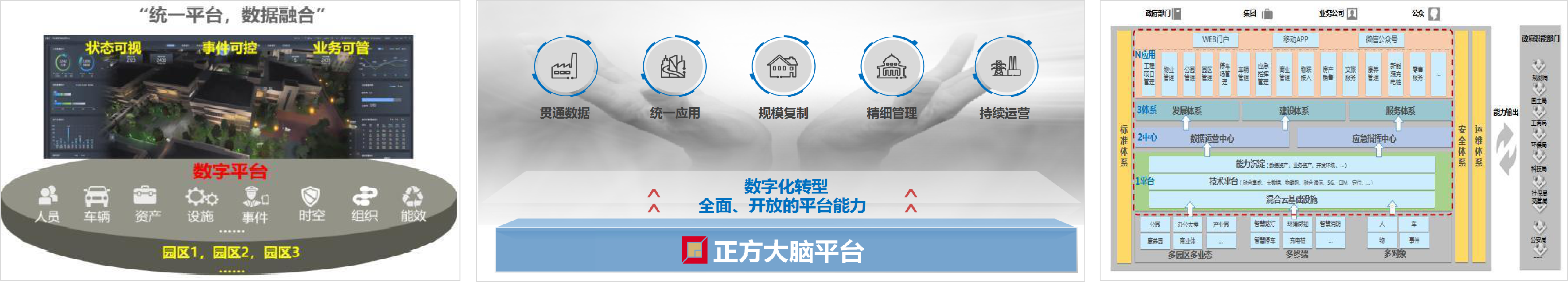 項目采用技術(shù)先進、數(shù)據(jù)賦能、靈活開放、安全可靠的“1+2+3+N”架構(gòu),以物聯(lián)網(wǎng)、大數(shù)據(jù)、云計算、AI人工智能、5G、GIS等新型數(shù)字化技術(shù)為基礎(chǔ),為實現(xiàn)業(yè)務(wù)數(shù)據(jù)全融合、狀態(tài)全可視、業(yè)務(wù)全可管、事件全可控,對集團多業(yè)態(tài)、多園區(qū)、多項目進行深度智慧化與高度集成化,著力打造正方大腦數(shù)據(jù)運營中心和應(yīng)急指揮中心,以完成項目統(tǒng)一規(guī)劃及統(tǒng)一標準建設(shè),為智慧城市建設(shè)賦能。
