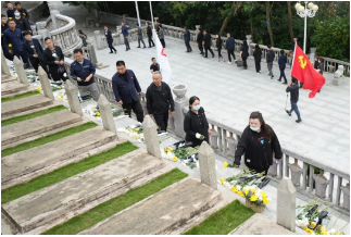 烈士陵園莊嚴肅穆,蒼松翠柏,全體人員齊唱國歌,向革命先烈默哀,通過向革命先烈敬獻花圈、鞠躬、獻花等形式,表達對革命先烈的無限敬仰和深切緬懷。