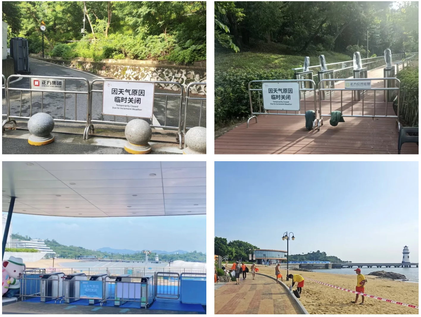 第一時間關(guān)閉管養(yǎng)景區(qū)、沙灘等14個管養(yǎng)區(qū)域,提前發(fā)布閉園通知,落實市民游客安全疏散,設(shè)置鐵馬、警戒線、風(fēng)險告示等,開展設(shè)施加固、排水疏通、物資轉(zhuǎn)移、樹木加固、排水口清淤等工作,確認自卸車、油鋸、發(fā)電機、抽水泵、沙袋等常用應(yīng)急物資準備就緒。香山湖2號停車場于7月19日18:00至21日12:00免費開放,為市民車輛提供臺風(fēng)期間避險停放場所。