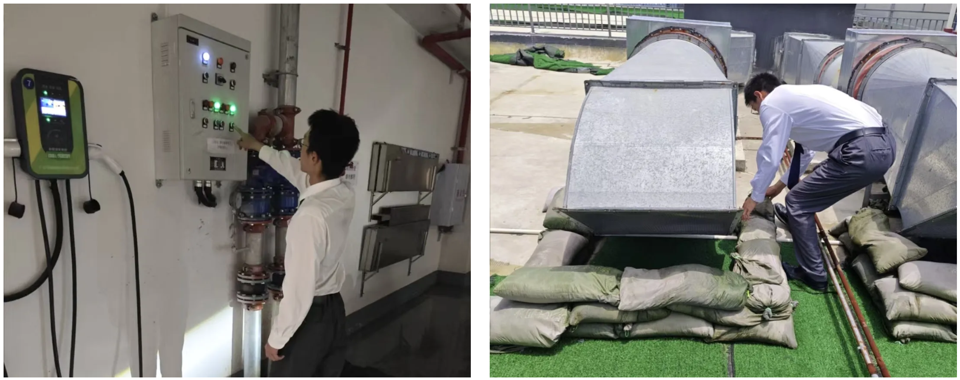 在情侶路沿線運營商圈迅速開展排水口清掏清理,大型玻璃與廣告牌加固,發(fā)電機、抽水泵等防汛設(shè)備測試等工作,確保防風(fēng)排水設(shè)施良好,應(yīng)急物資充足。