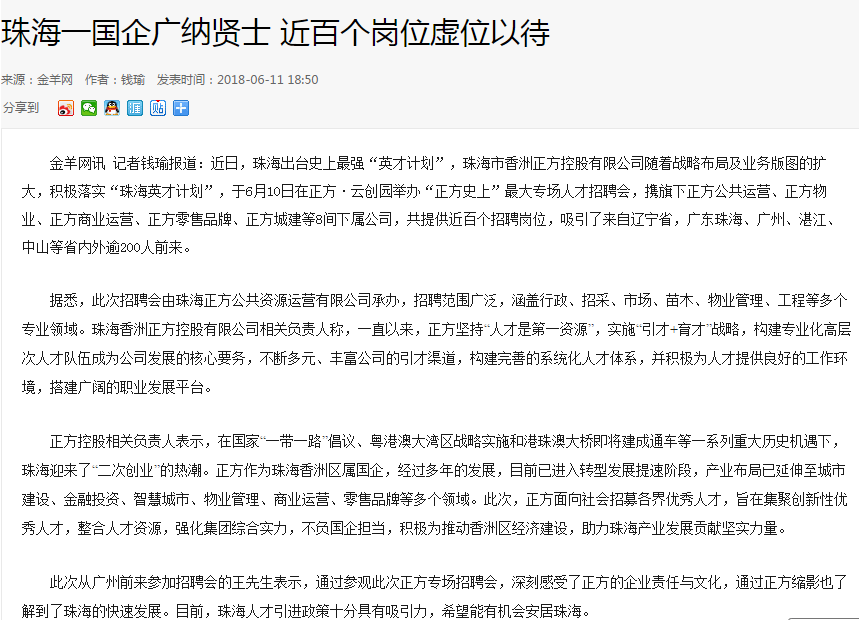 正方控股相關(guān)負(fù)責(zé)人表示,在國(guó)家“一帶一路”倡議、粵港澳大灣區(qū)戰(zhàn)略實(shí)施和港珠澳大橋即將建成通車等一系列重大歷史機(jī)遇下,珠海迎來(lái)了“二次創(chuàng)業(yè)”的熱潮。正方作為珠海香洲區(qū)屬國(guó)企,經(jīng)過(guò)多年的發(fā)展,目前已進(jìn)入轉(zhuǎn)型發(fā)展提速階段,產(chǎn)業(yè)布局已延伸至城市建設(shè)、金融投資、智慧城市、物業(yè)管理、商業(yè)運(yùn)營(yíng)、零售品牌等多個(gè)領(lǐng)域。此次,正方面向社會(huì)招募各界優(yōu)秀人才,旨在集聚創(chuàng)新性優(yōu)秀人才,整合人才資源,強(qiáng)化集團(tuán)綜合實(shí)力,不負(fù)國(guó)企擔(dān)當(dāng),積極為推動(dòng)香洲區(qū)經(jīng)濟(jì)建設(shè),助力珠海產(chǎn)業(yè)發(fā)展貢獻(xiàn)堅(jiān)實(shí)力量。