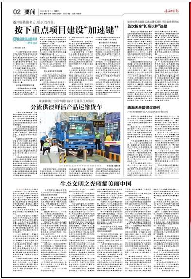 劉齊英表示,面對疫情影響,香洲區(qū)采取多項舉措,在做好疫情防控的同時,以“一月一調(diào)度”掛圖作戰(zhàn)的超常規(guī)方式,整合資源、加強調(diào)度、集中突破、提高效率,按下重點項目建設(shè)“加速鍵”,幫助企業(yè)千方百計把疫情耽擱的時間搶回來,把經(jīng)濟損失補回來。