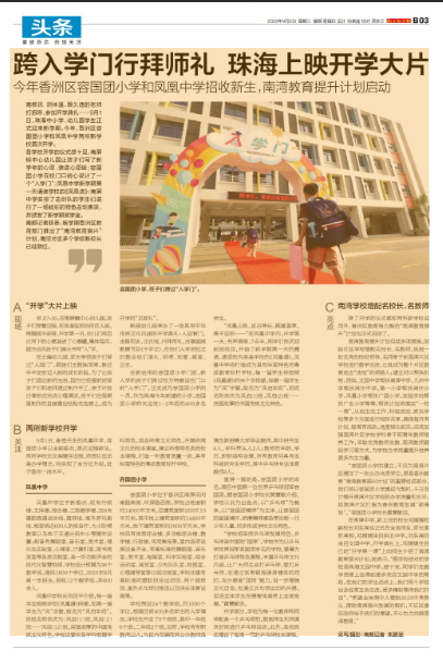 除了開學(xué)的儀式感和兩所新學(xué)校啟用外,香洲區(qū)教育局力推的“南灣教育提升”計(jì)劃也正式啟動(dòng)了。