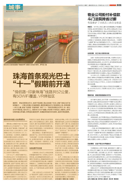 乘坐雙層觀光巴士,徜徉于情侶路,直達沿線各個景點,感受“浪漫之城”的獨特魅力……記者從珠海公交集團獲悉,首條珠海觀光巴士專線即將上線。該條線路一共52公里,起名“情侶路-印象珠?!?,將于“十一”前在情侶路正式開行。與一般公交車不同的是,觀光巴士上,有整車5GWiFi覆蓋,并設有VR體驗區(qū),游客車上即可玩轉(zhuǎn)珠海眾多海島,探索虛擬海底世界;車廂提供自助飲料售賣機,提供充電寶服務。