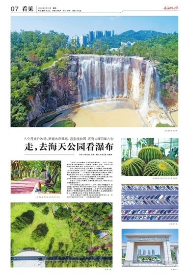 飛瀉而下的水簾瀑布、風(fēng)格時尚的植物園……經(jīng)過6個月的提升改造,昔日情侶路上一塊鮮有人問津的“綠地”,近日成為市民游客休閑、健身、娛樂、觀光的好去處——海天公園。