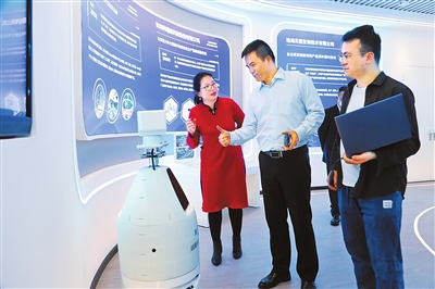 珠海市香洲區(qū)專精特新企業(yè)發(fā)展一站式服務(wù)平臺成果展示館內(nèi),各專精特新企業(yè)展示產(chǎn)品成果。