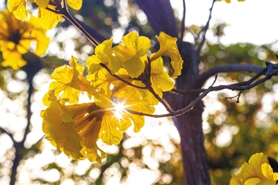 如今黃花風(fēng)鈴正值盛花期,隨風(fēng)搖曳,宛若風(fēng)鈴。想要邂逅它們,可以前往香山湖公園、海天公園、野貍島公園,春風(fēng)路、斗門鎮(zhèn)小濠沖村、小赤坎村等地。香洲區(qū)范圍內(nèi)的幾個(gè)公園停車都較為方便。