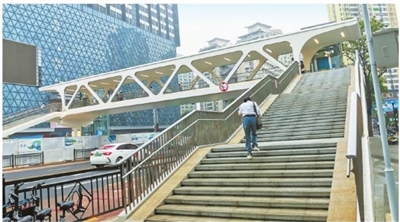 揚(yáng)名廣場前方的天橋已臨時開放通行。 珠海特區(qū)報(bào)記者 李建束 攝