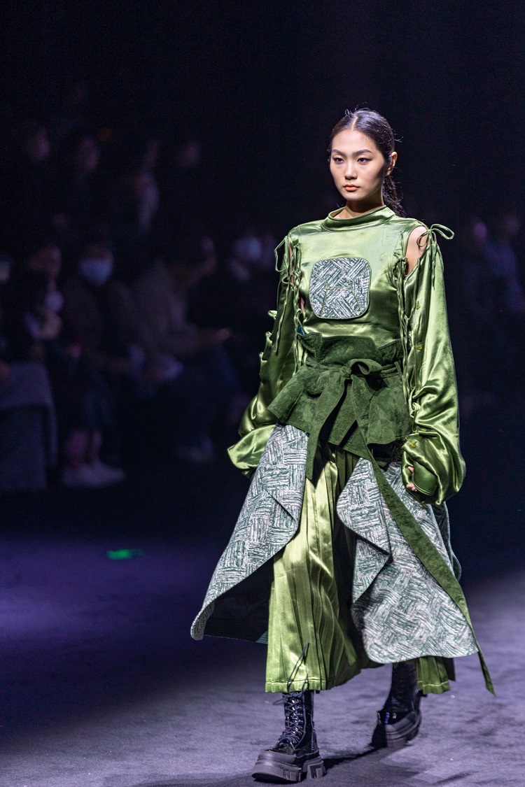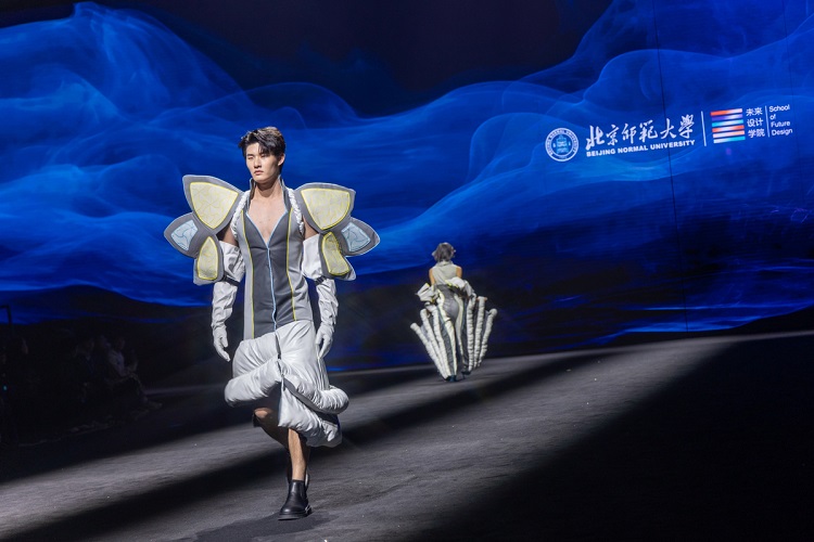 在北京師范大學(xué)未來設(shè)計學(xué)院教師劉安、許棟樑的指導(dǎo)下,宋昕睿、徐碧山、柏懿洋等學(xué)生圍繞超現(xiàn)實主義、多功能、新中式、朋克及水墨藝術(shù)等多元主題,在本次大秀的設(shè)計作品中融合可持續(xù)理念與多種設(shè)計方法,重點突出傳統(tǒng)與現(xiàn)代和諧共存的理念。